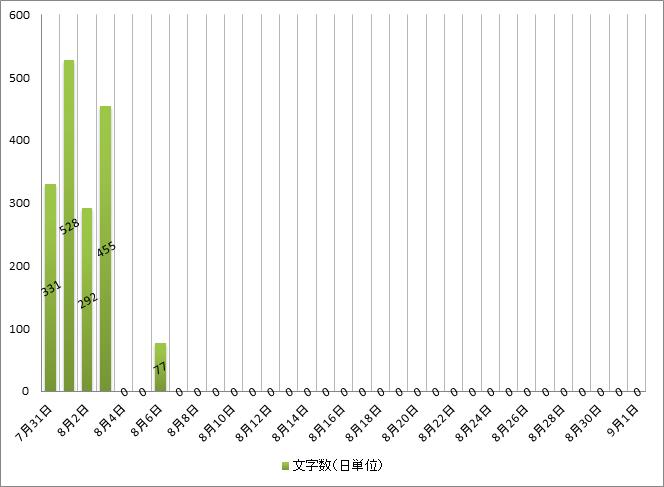 ルーチンが早速とん挫したようなグラフになっているが、他の連載中の作品を書き進めているので、ゼロではない。どうも、気が散りやすいのか、一つの作品だけ集中して手掛けるというのは、あまり効率的ではない気がする(精神的に)。でも、「書くなら、締め切りをもうけなければ絶対ダメ」とかいう先人たちのお言葉も見聞きする。そりゃそうなんだけど、気分が乗らないときにWORD開いても、何分立っても真っ白、ってこともあるのだから、それよりかは、複数作品をもぐらたたき的に少しずつ進めていくのも悪くない気がする……とか言えるのは、ある程度完成品を量産させてからだな。