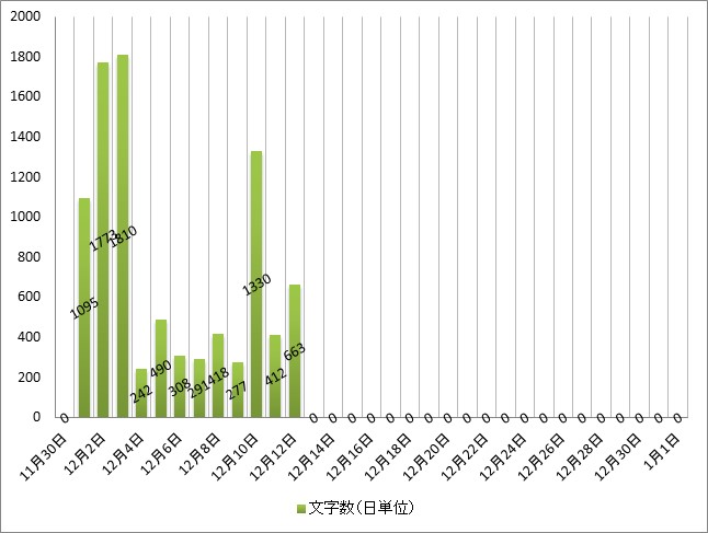 だめだ、今日の進捗グラフ作成は、24時をこえたため、日付を1日まきもどさなければならない。ねーむーい。