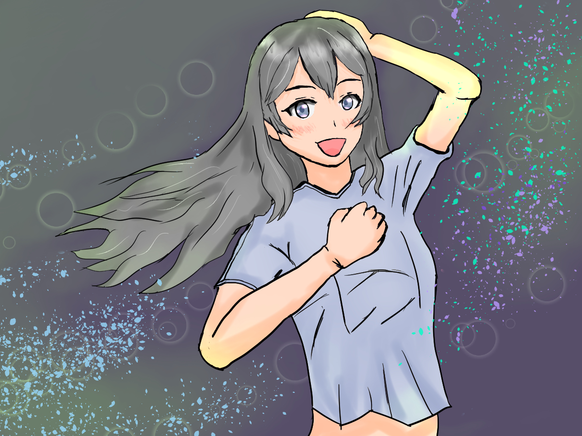 髪のウェーブ感というのを、YOUTUBE動画の「深雪(ディープブリザード)氏」の動画で学んだ。髪は毛先にいくほど水分が少なくなってウェーブがかかるとか、絵を描く人たちって、観察力もそうだし、科学的なんだなって思った。