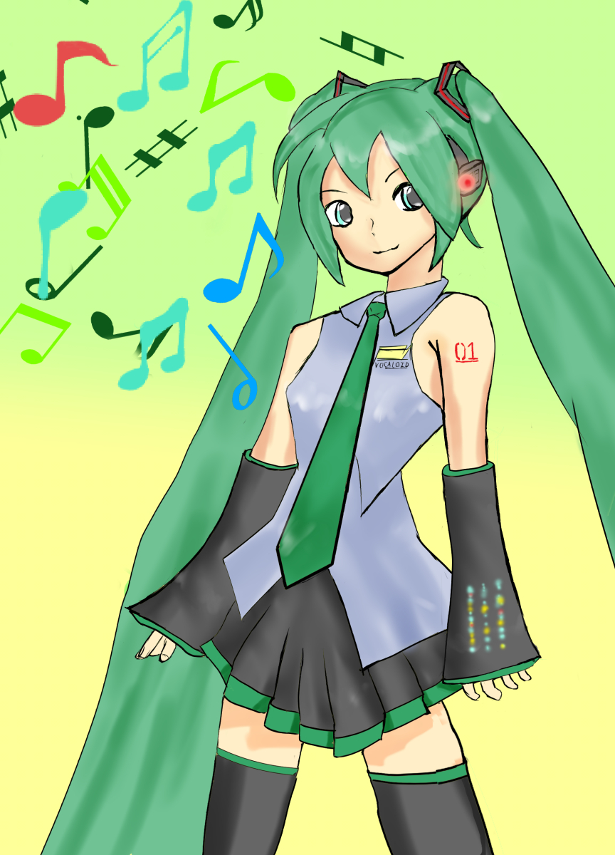 ということで、初音ミクの初代パッケージをじっくりみながら描いた。