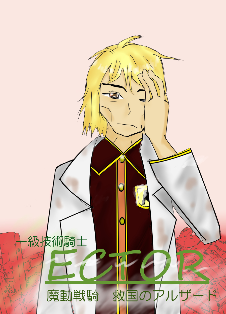 魔動戦騎救国のアルザードとは、魔力を動力源とする人型兵器「魔動機兵」を駆使して戦うロボットファンタジーである。上のリンクで読める。その登場人物で、魔動機兵の開発設計技師であるエクター・ニムエー氏を描いてみた。