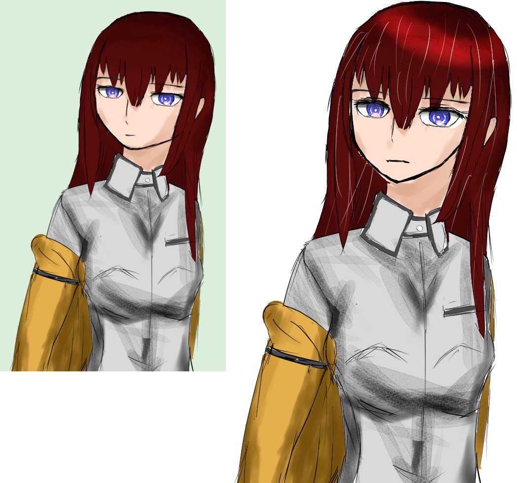 あと、髪の色がのっぺりしていたので、ハイライトいれたり、明るくした。