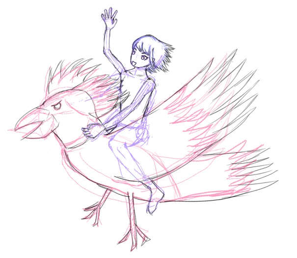 でもまぁ、取り敢えず鳥さんに乗っているイラストということは伝わるし、今のところの実力なので恥ずかしげもなく投稿する。