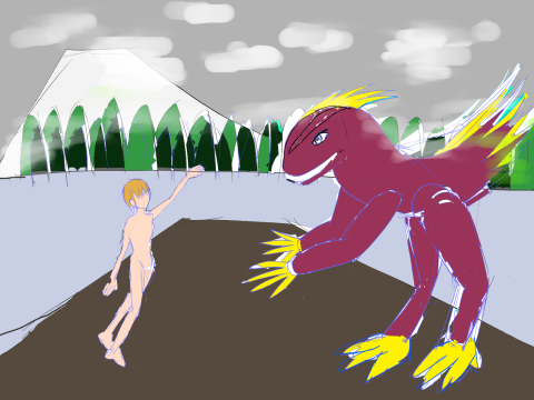 人以外を描いてみよう。鳥さんを描いてみようということからの作品。arkの影響を多分に受けている。鳥さんの参考はもちろんアルゲンタヴィスであったのだが、似ても似つかなくなった。人以外については、またそれなりの何かコツ(というかポイントの知識)がないと、何枚書いても上達しない気がした。