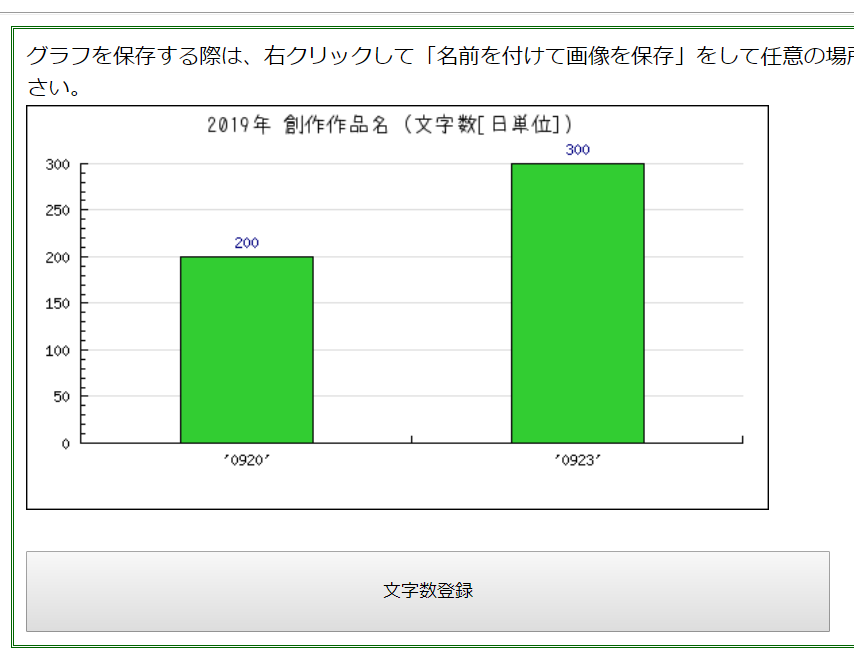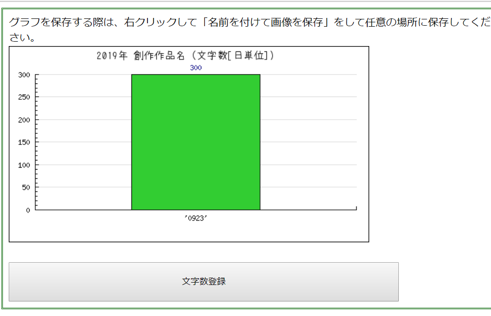 一日分だけだと不格好だけど、ちょっとまって。文字数登録ボタンを押してみる。