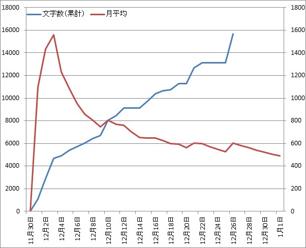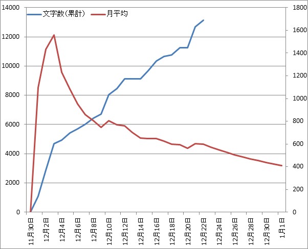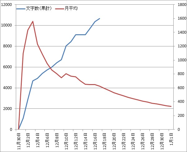 以下進捗グラフ。平均(赤いグラフ)が……下がる一方だ。