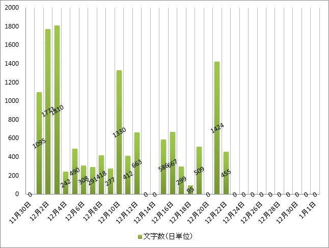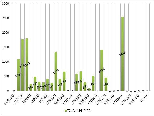 進捗は以下グラフ。微妙な進捗だ――が、以上、だ。