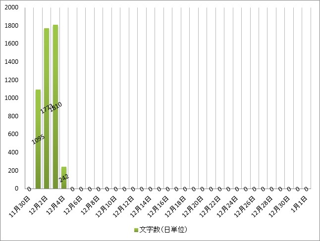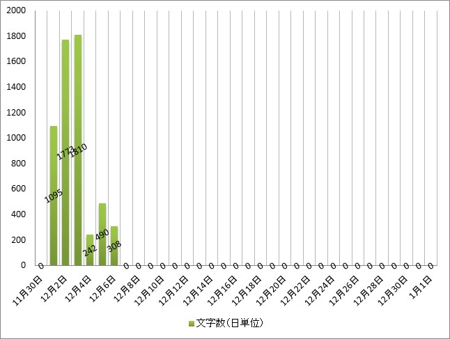 進捗グラフ。たいして、感想の文字数は多くない。だが、進捗した気がした。そして、気持ちものってきている。この状況が様々な諸事情で砕かれないことを切望する。