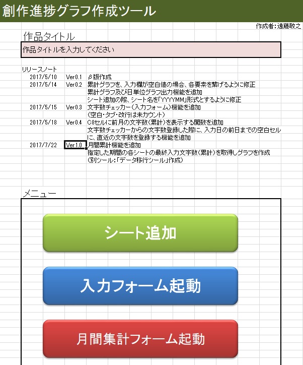 DLはこちら→創作進捗グラフ作成ツールver.1.0